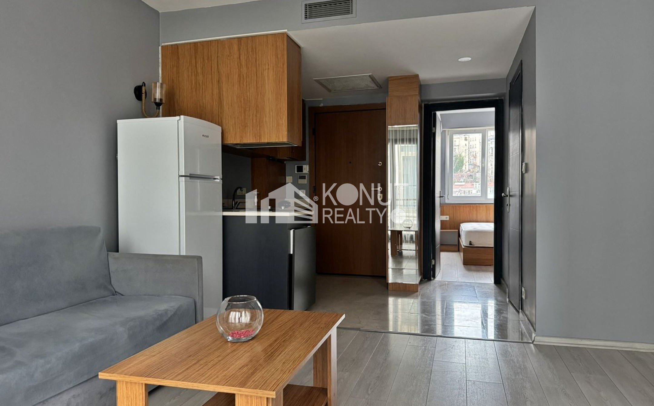 This modern and stylish 1+1 apartment is located in the center of the city. Located in a new 6 years old well-maintained building, it offers a safe environment for your comfort. The apartment is furnished with modern furniture and equipped to meet all your needs. It is also close to public transportation, which will facilitate your mobility in the city. With a central location that provides easy access to shopping centers, restaurants and other amenities, the apartment promises a comfortable life.